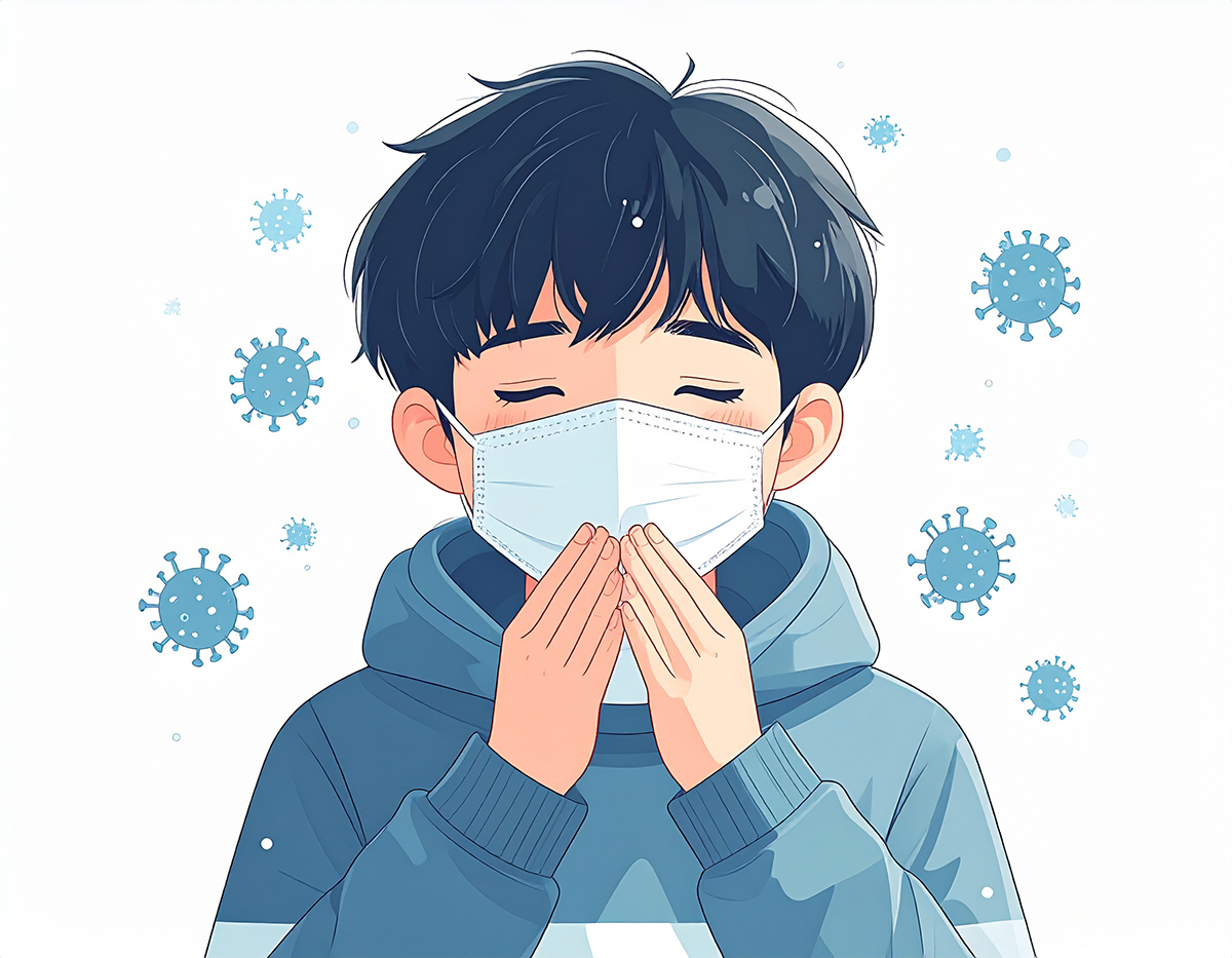 【無料・商用OK】インフルエンザ・風邪予防に最適な「マスク姿の男の子」のイラスト