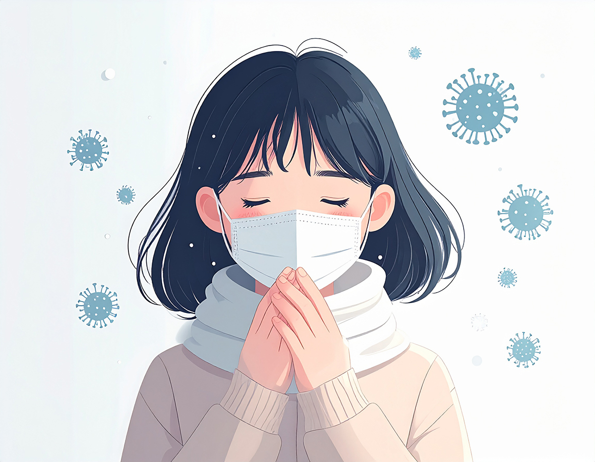 【無料・商用OK】インフルエンザ・風邪予防に役立つ「マスク姿の女の子」のイラスト