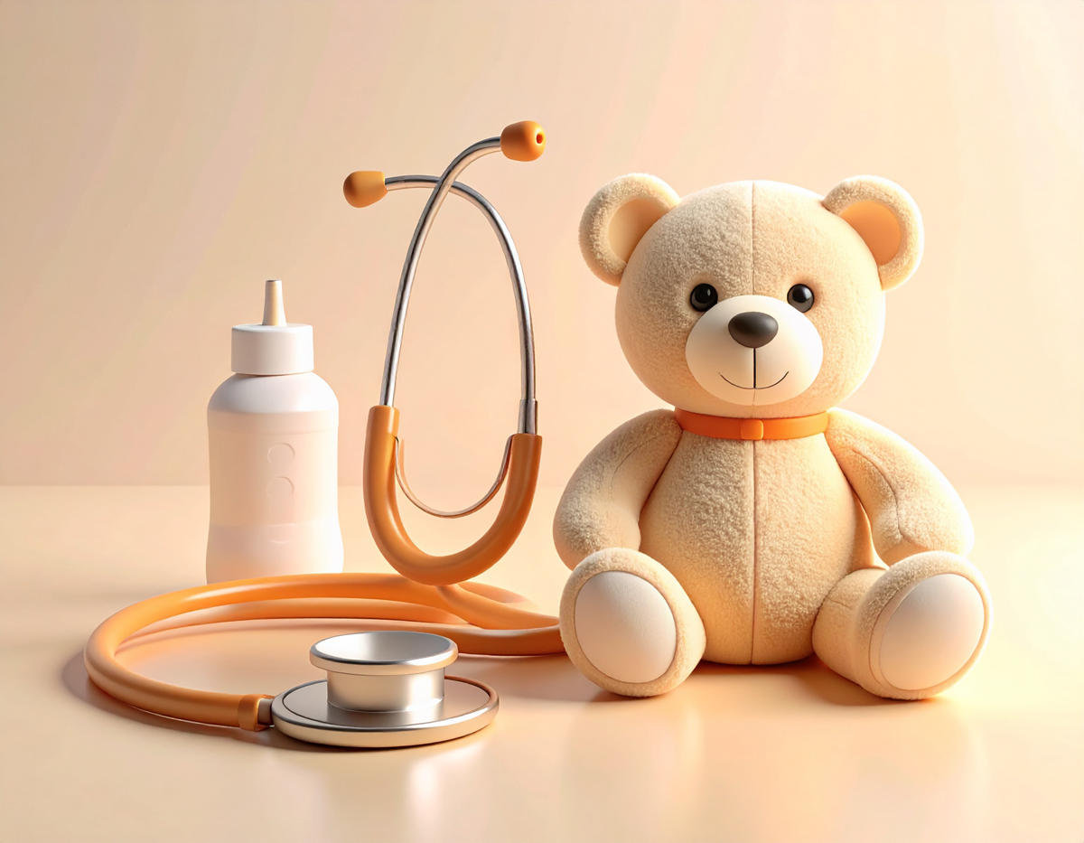 私たちは、小児科特有の課題を解決するため、暖色系(オレンジ・クリーム色)を基調とした、やさしい雰囲気の3Dイラスト素材をご用意しました。この素材は、「子供目線の安心感」と「医療機関としての信頼」を両立できるように、細部にまでこだわって制作されています。