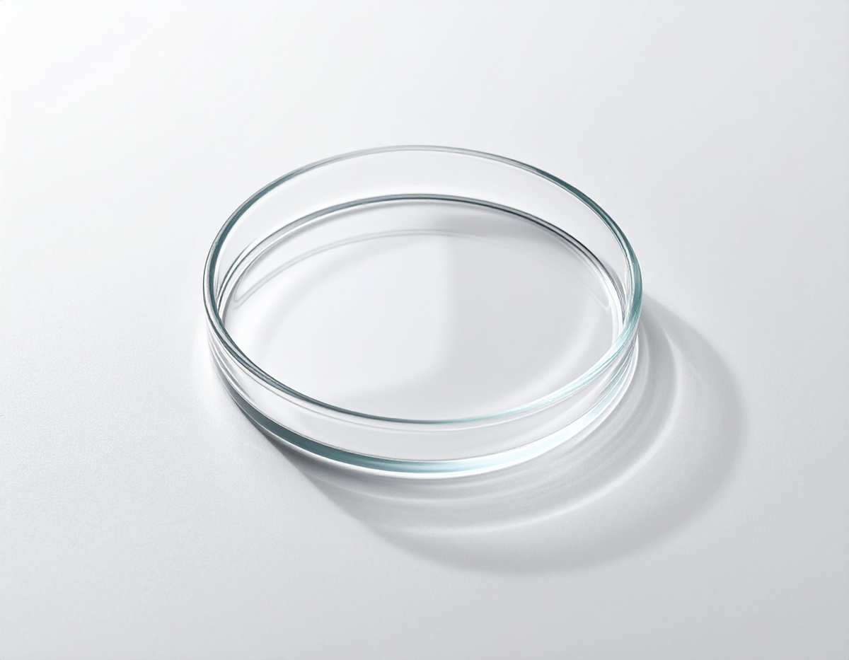 透明なガラス製のシャーレは、医療検査の厳密性と診断の透明性を視覚的に伝えます。